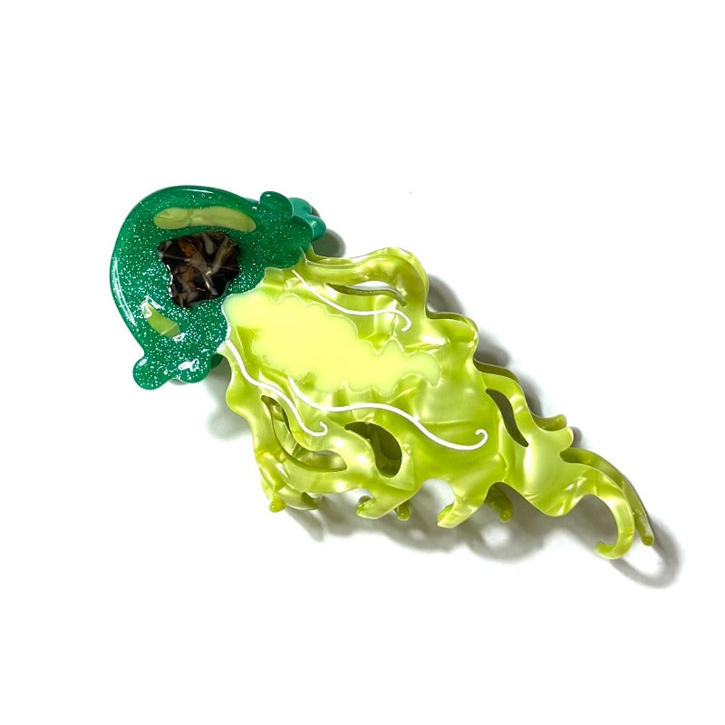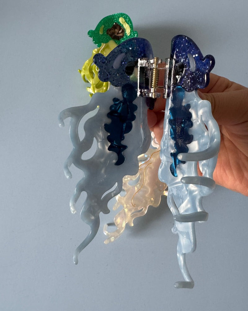 Dive into whimsical elegance with this jellyfish-inspired hair claw. Its flowing, sculpted design adds a sense of movement and charm to any hairstyle, while the smooth curves and lightweight construction ensure a secure and comfortable hold. Perfect for dreamers, ocean lovers, or anyone looking to add a playful, ethereal touch to their look.