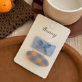 Brighten up any hairstyle with this Blue Bow Orange Plaid Oval Hair Clip. Featuring a vibrant orange plaid pattern paired with a cute blue bow, this accessory adds a cheerful and playful touch to bangs or side sections.