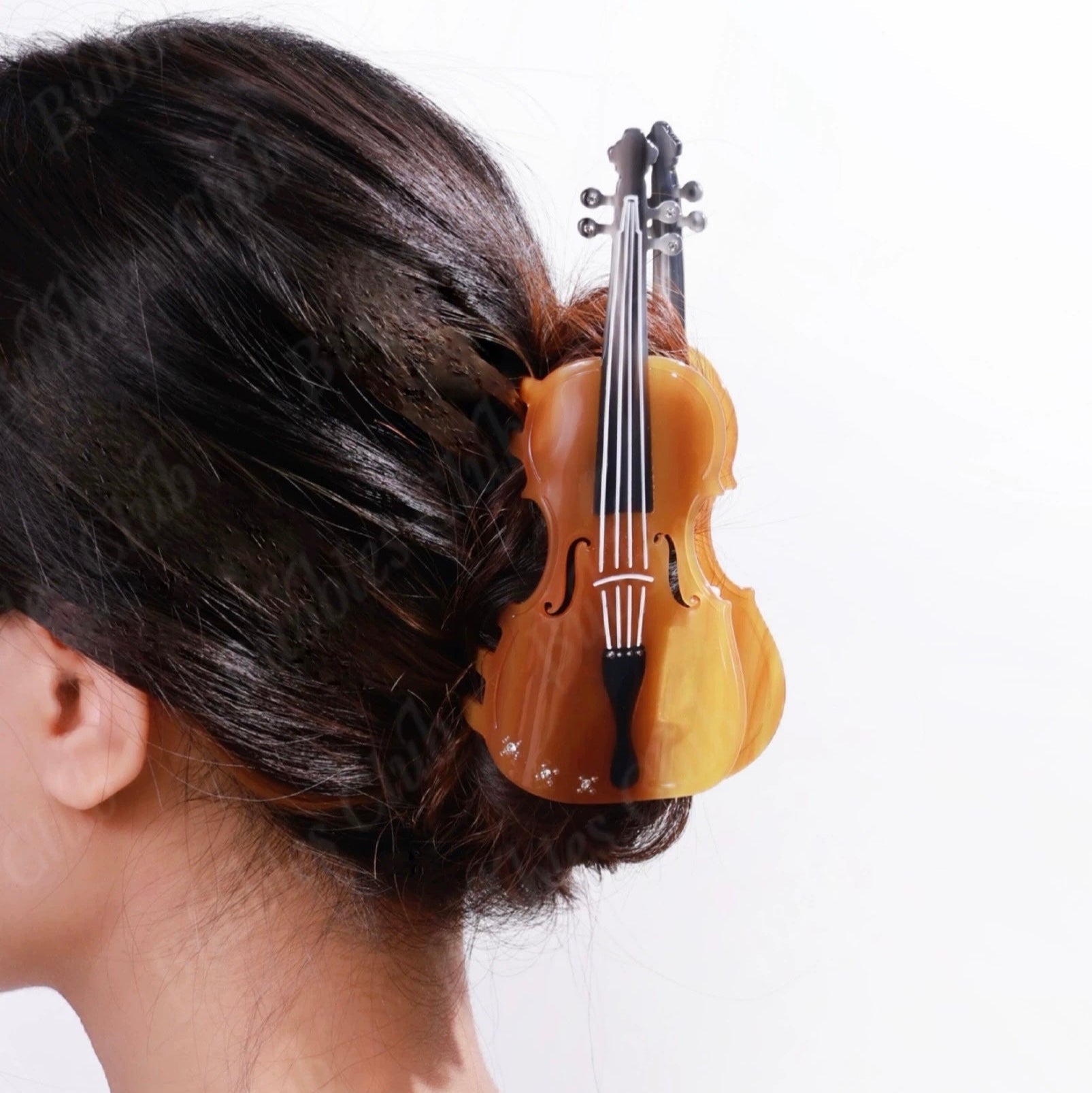 Inspired by the warm, resonant tones of classical music, this cello-shaped hair claw brings a touch of elegance and artistry to your hairstyle. Its sculpted curves echo the romance of quiet moments, each detail reminiscent of a soft note lingering in the air.