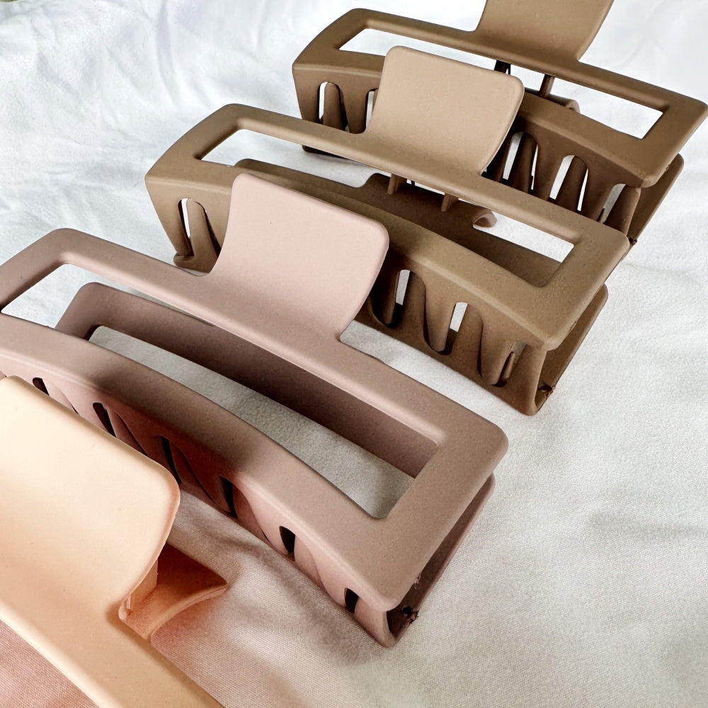 The Jumbo Avery Claw Clip is engineered for those with longer lengths and medium-to-thick hair textures that demand substantial holding power. At approximately 5 inches wide by 3 inches tall, this oversized claw provides expansive grip surface capable of securing voluminous styles with precision and stability. The robust construction delivers unwavering hold throughout the day, eliminating the frustration of slippage or repositioning during active wear or extended styling sessions. Whether you're creating elegant French twists, voluminous half-up styles, or secure low ponytails, the Jumbo Avery accommodates the weight and density of thicker hair without compromising comfort. The thoughtfully proportioned design ensures even pressure distribution, preventing the tension-related discomfort often associated with standard clips on heavier hair. Ideal for both everyday styling and special occasions, this claw clip represents a professional-grade solution for managing substantial hair volume with confidence and ease. Thank you for supporting Sage Clay Co—your choice directly sustains our small business and allows us to continue crafting quality hair accessories.