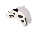 Bring a touch of playful elegance to your hairstyle with the Curious Dalmatian Dog Hair Claw. Inspired by the charming patterns of Dalmatian spots, this sculpted accessory embodies a soft whisper of beauty, combining whimsical style with serene sophistication.