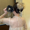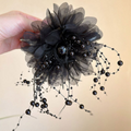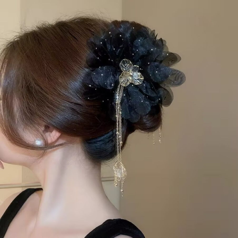 Black Peony Pearl-Chain Hair Claw – 11 cm