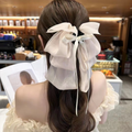 Designed with soft flowing ribbons and delicate pearl accents, this hair clamp blends femininity and sophistication in one beautiful accessory.
