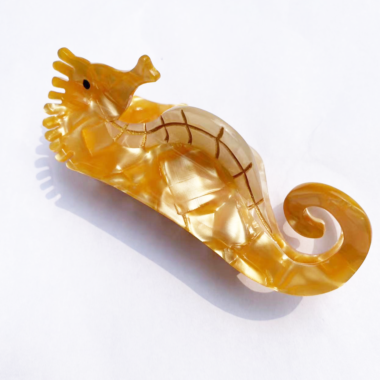 Bring a touch of whimsical ocean charm to your hairstyle with the Green Hippocampus Japonicus Hair Claw. Inspired by the graceful seahorse, this sculpted claw clip combines playful design with a secure hold, making it perfect for casual days or stylish updos.