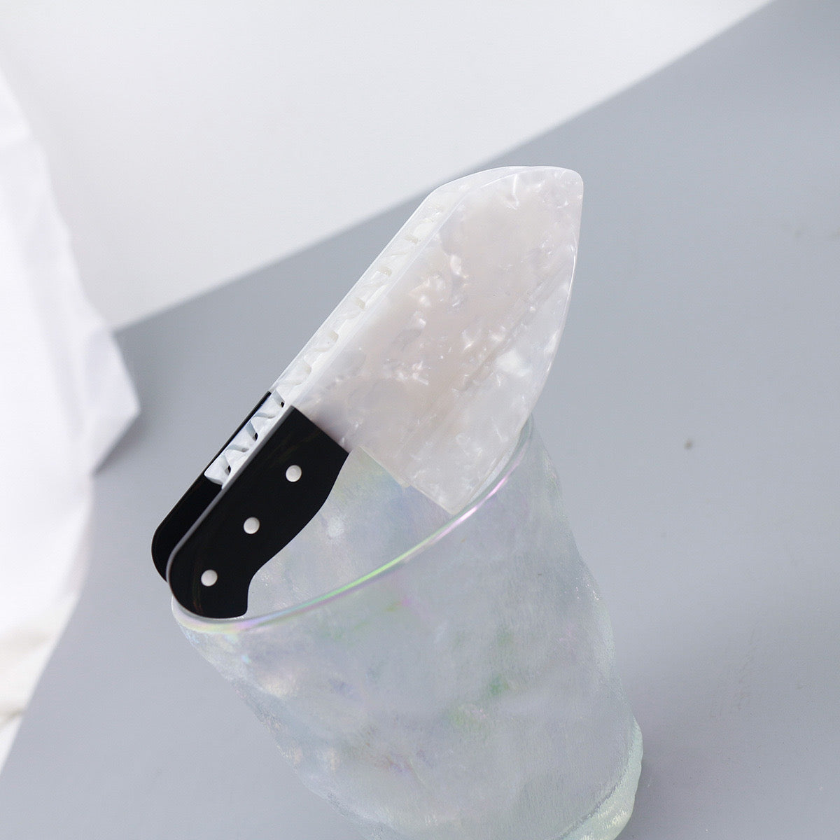 Lightweight yet sturdy, it securely holds hair in place, making it perfect for half-up styles, updos, or creative everyday looks. Designed for dreamers, artists, and soft souls, the Kitchen Knife Hair Claw transforms your hair into a piece of wearable art.