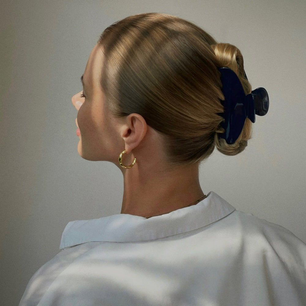 Our Big Effing Clip’s little sister. With a slightly smaller frame, this claw clip was made for short and fine hair for a full up-do or long hair for a half-up-half-down. A core clip to elevate any and every outfit.