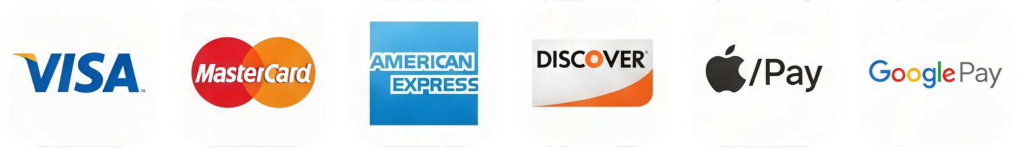 - Major credit and debit cards (Visa, MasterCard, American Express, Discover)