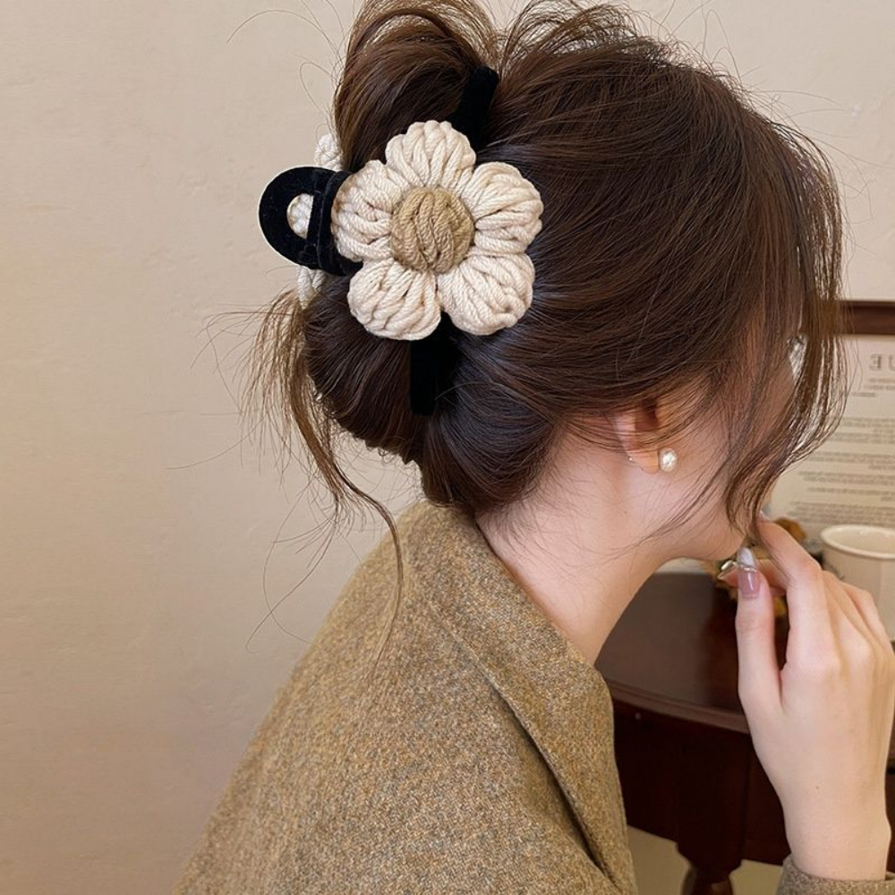 Oversized Flower Knit Hair Clip – Soft & Cozy